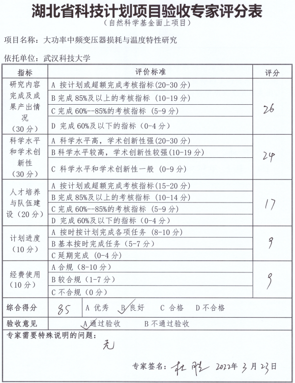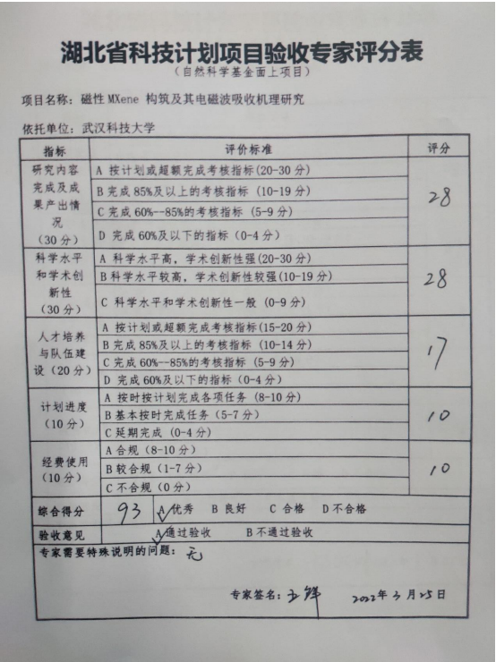 按照《省科技廳關(guān)于組織開(kāi)展湖北省科技計劃項目驗收工作的通知》要求,集團組織成立專(zhuān)家評審組,對以下三個(gè)2022結題項目開(kāi)展驗收。驗收結果匯總如下表: