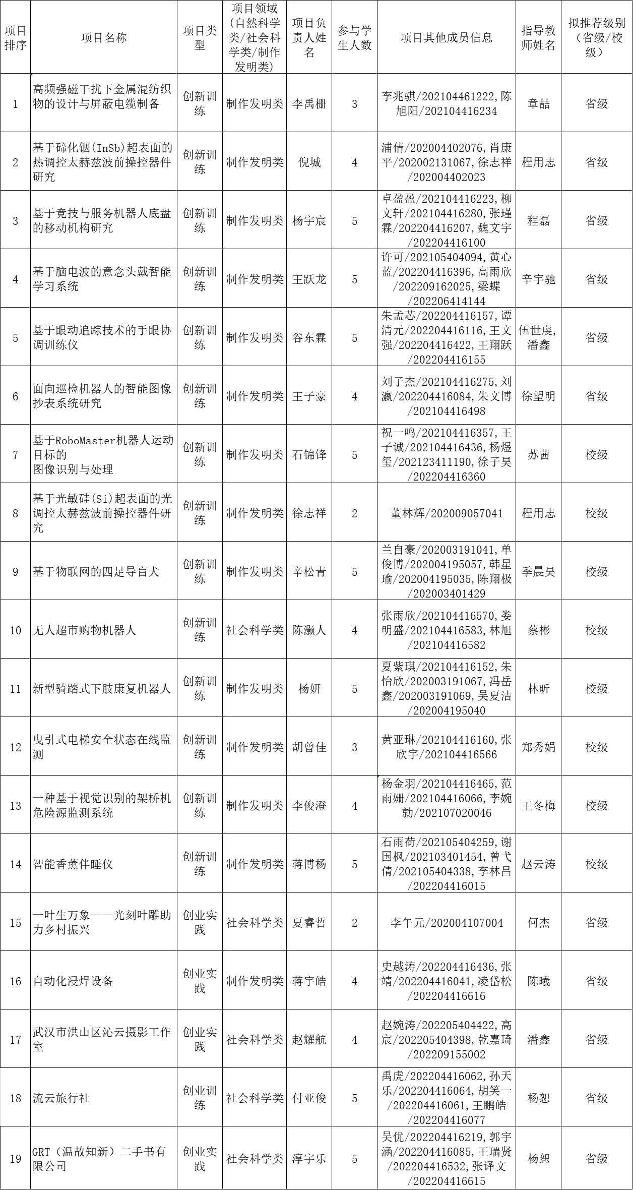 根據學(xué)?!蛾P(guān)于我校2023年省級和校級大學(xué)生創(chuàng )新創(chuàng )業(yè)訓練計劃項目申報工作的通知》,經(jīng)學(xué)生申報、學(xué)院組織專(zhuān)家匿名評審,現將學(xué)院立項評審結果公示如下: