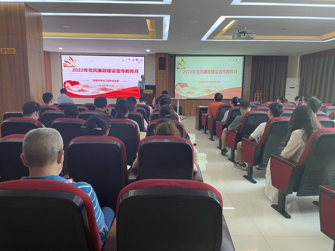 為扎實(shí)開(kāi)展黨風(fēng)廉政建設宣教月活動(dòng),深入推進(jìn)清廉學(xué)院建設,9月15日下午,信息學(xué)院黨委在學(xué)院401學(xué)術(shù)報告廳召開(kāi)黨風(fēng)廉政建設宣傳教育月警示教育大會(huì ),學(xué)院領(lǐng)導班子成員、各系部主任、支部書(shū)記以及部分黨員代表參加會(huì )議,會(huì )議由學(xué)院黨委書(shū)記劉運顯主持。