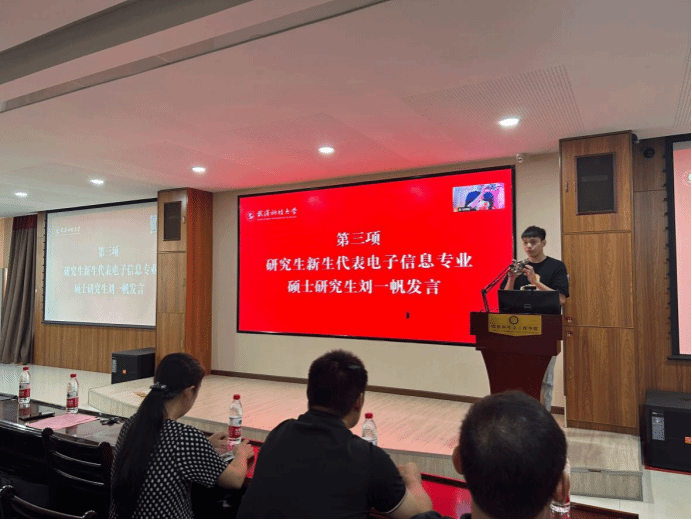 新生發(fā)言結束后,學(xué)院院長(cháng)劉振興老師發(fā)表致辭。他要求研究生新生珍惜來(lái)之不易的學(xué)習機會(huì ),學(xué)好碩士或者博士課程,打牢理論基礎,以高標準嚴格要求自己,從小事做起,從言行舉止做起,從端正態(tài)度做起。并且要對科學(xué)技術(shù)和一切美好的事物予以密切關(guān)注,保持積極向上的生活態(tài)度和科學(xué)研究態(tài)度。同時(shí)還希望同學(xué)們不負韶華,不負時(shí)代,不負人民,以青春之我、奮斗之我,為學(xué)校添彩,為祖國爭光。最后,劉振興老師祝賀各位新生來(lái)到信息學(xué)院,愿同學(xué)們度過(guò)美好的新學(xué)期。