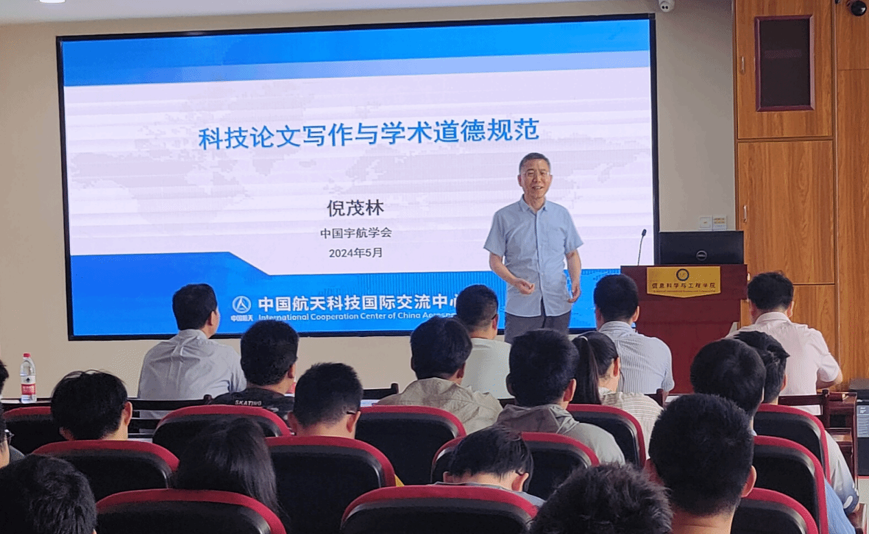 5月13日上午,中國宇航學(xué)會(huì )倪茂林研究員應邀來(lái)校,為集團師生獻上了一場(chǎng)精彩的學(xué)術(shù)報告。倪研究員作為《宇航學(xué)報》副主編、《自動(dòng)化學(xué)報》副主編,以及多個(gè)期刊編委的身份,帶來(lái)了關(guān)于“科技論文寫(xiě)作與學(xué)術(shù)道德規范”的主題演講。本次講座吸引了百余位師生參加,《宇航學(xué)報》青年編委以及學(xué)院副院長(cháng)劉勁擔任主持。