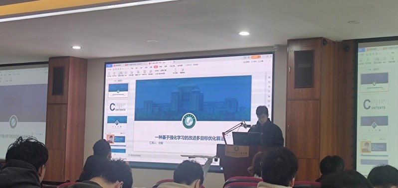 圖3.劉俊做題為“一種基于強化學(xué)習的自適應多目標優(yōu)化算法的路徑規劃方法”的報告