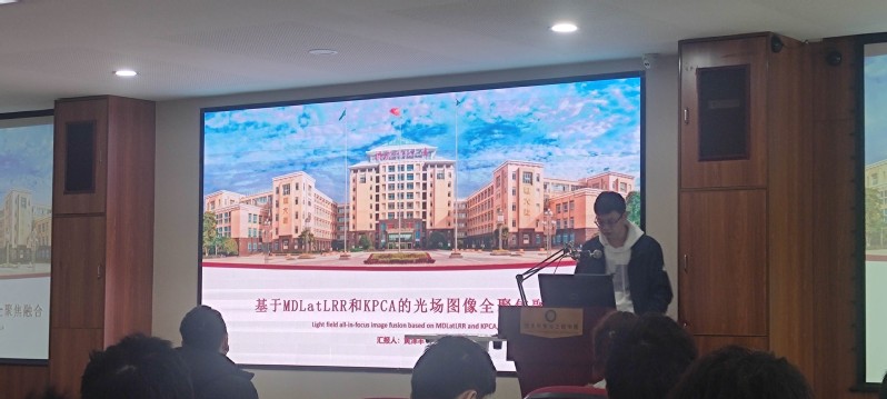 圖2.黃澤豐做“基于MDLatLRR和KPCA的光場(chǎng)圖像全聚焦融合”的報告